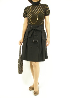 トレンチスカートは今シーズンも注目のアイテム。ドットやパフスリーブと合わせればチョイ甘コーディにも良いですね。黒で統一すればスッキリ着こなせます!フェミニン度90%、スタイリッシュ度10%。