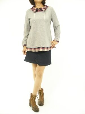 くっつきカットソーはAラインでガーリーナイメージ。ミニデニスカとショートブーツで軽やかにランチタイムを楽しめそうですね!アクティブ度90%、フェミニン度10%。