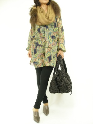 ファー付きスヌードはボタンを外せばストールにもなる便利なアイテム。今日は二重に巻き付けてブラウスワンピとのバランスを取りました!スタイリッシュ度80%、エレガンス度20%。