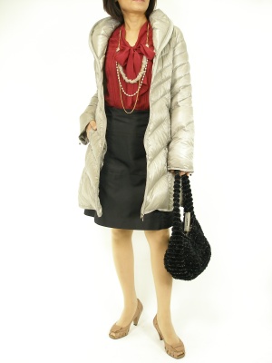 シルクの光沢が美しいブラックスカートとボウタイブラウスで今年風に。さらに黒×赤でモダンに仕上げてみました!スタイリッシュ度70%、エレガンス度30%。