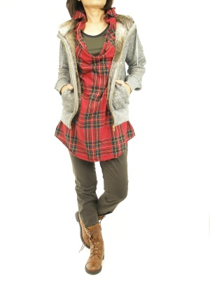 着心地の良いシャツはパーカのインナーとしてアクセントとして大活躍しますね。ダークトーンでまとめたあるので秋らしい装いに!アクティブ度90%、スタイリッシュ度10%。