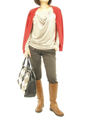 鮮やかな色は他のアイテムにも使うとバランスがとれますね。今日はベルトの色をリンクさせました。赤とこげ茶はとても相性が良いのです!アクティブ度90%、スタイリッシュ度10%。
