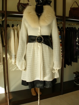ベルトでエウストマークしたら、スカートのボリュームが際立ちます。華やかですが、かわいらしさもあるシルエットに!エレガンス度60%、フェミニン度40%。