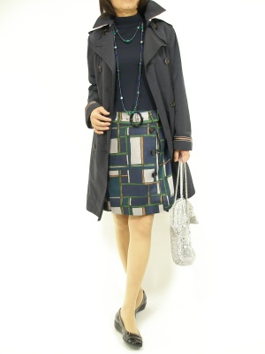 あえて色を足さずネックレスの輝きをアクセントにした。ネイビーのストイックなコーディネート!スタイリッシュ度80%、エレガンス度20%。