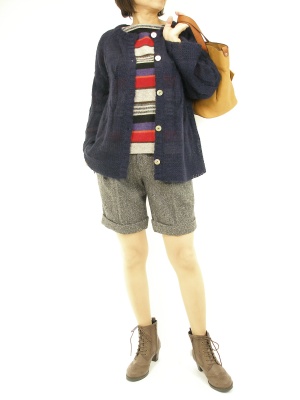 薄手のモヘアは今年の注目アイテム。ボーダーニットとの相性も良いですね!アクティブ度90%、スタイリッシュ度10%。