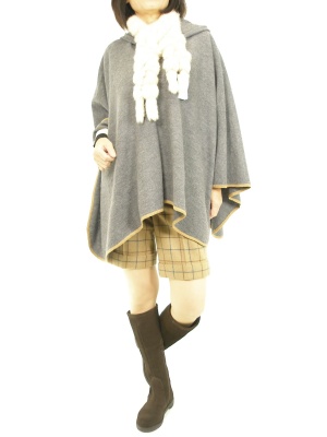 ケープの分量が多い分どうしてもふっくら見えてしまう。ボトムスを短くしてバランスを取るのも一つです!アクティブ度90%、フェミニン度10%。