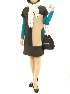 ワンピースにタートルをインした王道レトロスタイル。ソフトに見せたい時はファーをプラスしてみて!フェミニン度70%、スタイリッシュ度30%。
