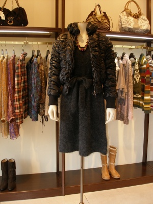 ふんわりしたニットワンピースにコンパクトなダウンで甘辛MIX。足元はブーティで重さのバランスをとって!エレガンス度70%、スタイリッシュ度30%。