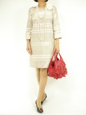 全身ワントーンでまとめれば、アクセをたっぷり盛ってもワンピの上品さをキープします!エレガンス度90%、フェミニン度10%。