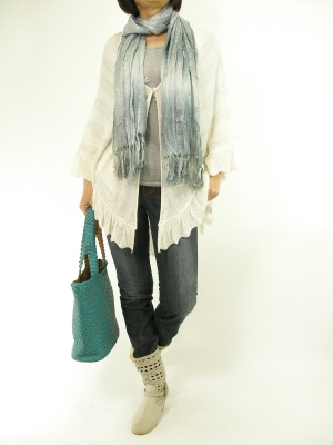 ポンチョは寒色系でスッキリとまとめるとカジュアルすぎずクールな印象に!アクティブ度60%、スタイリッシュ度40%。