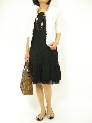 ブラックワンピの上品さをキープしつつ、少しだけカジュアルダウンするならこんなジャケットがお薦めです!エレガンス度70%、スタイリッシュ度30%。