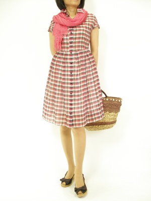 スカートがふわっと広がるキュートなシャツワンピ。無地ストールで視線を上に集めて!アクティブ度60%、フェミニン度40%。