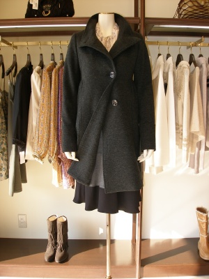 ドレスコートの要素を含んだお洒落なコートを主役に・・・。ブーツと合わせてお出かけにぴったりです!エレガンス度80%、フェミニン度20%。