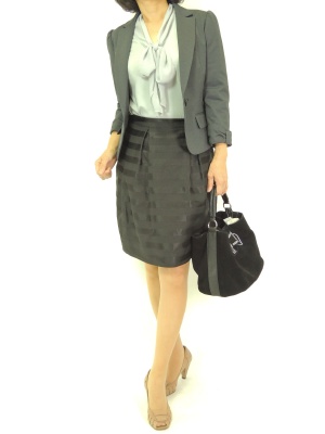 秋のジャケットスタイルは、インナーにボウタイやふんわりスカートでソフトに仕上げたい!エレガンス度80%、スタイリッシュ度20%。