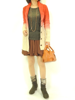 暖かそうなグラデーションニットには、あえてミニスカートを合わせるとメリハリが効いてお洒落です!フェミニン度60%、アクティブ度40%。