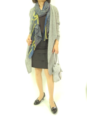 ニットのロングカーディは通勤着に羽織ってもしっくりまとまります!スタイリッシュ度80%、エレガンス度20%。