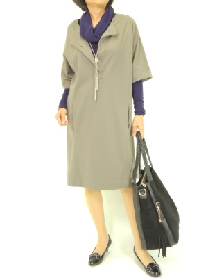 ゆとりのあるサックワンピはタートルをインした着こなしも可愛い!フェミニン度60%、スタイリッシュ度40%。