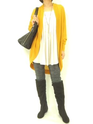 とろみのある長めトップスにはスキニーパンツを合わせてスッキリと。ブーツインして辛口カジュアルに仕上げました!スタイリッシュ度80%、アクティブ度20%。