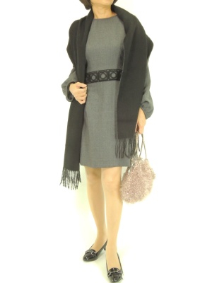 黒を効かせたシックなコーディネート。甘口デザインは地味色を選ぶのがオシャレです!エレガンス度60%、フェミニン度40%。