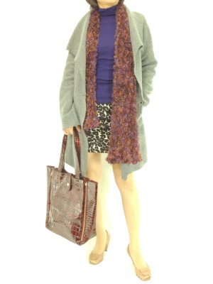 インパクトのある色柄にはグレーのコートを羽織ると、程よく落ち着きます!スタイリッシュ度90%、アクティブ度10%。