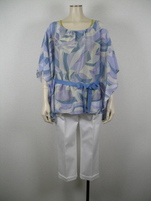 旬のたっぷりしたポンチョ。濃い色を使わず、淡いトーンでまとめると春っぽい!