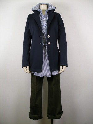 緩めのパンツをロールアップして長めのジャケットでコーディネート。カジュアルアップした春の装い!