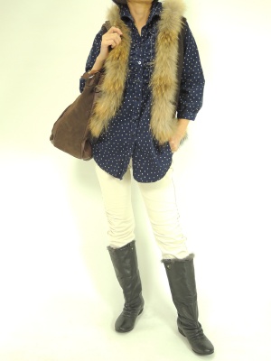 カジュアル派定番のチェックスタイルはファー付きベストをプラスすると新鮮!アクティブ度90%、スタイリッシュ度10%。