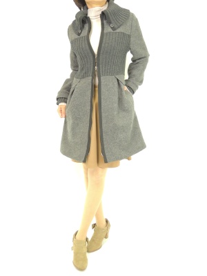 ニットとの切り替えでフェミニンなシルエットに仕上げたコート。フレアースカートでコートのラインを生かして!フェミニン度90%、スタイリッシュ度10%。