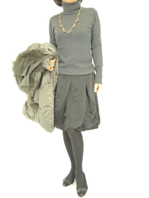 コーディネートいらずのトリックワンピは忙しい方の強い味方。ダウンコートを持ってお出かけできます!エレガンス度60%、スタイリッシュ度40%。