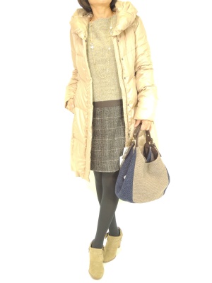 この冬はワンピースにもよく合うフェミニンなダウンコートが登場しています。カジュアルすぎない所がポイントです!フェミニン度80%、スタイリッシュ度20%。