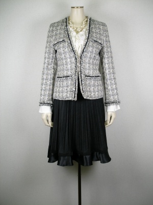 春は卒入学の季節です。上下揃ったものでなくても、色を合わせれば上品なコーディネートにもなりますね。小物を上手に使ってみるのも良いですよ!エレガンス度90%、フェミニン度10%。