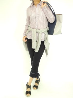 チェックシャツとデニムのデイリーカジュアルには、パーカをラフに巻いてこなれた感じをプラスして!アクティブ度100%。