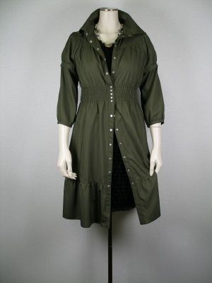 ダークカラーを春着るには、素材感がポイント。軽いワンピースコートの下からフリルたっぷりのスカートをのぞかせてみました!スタイリッシュ度80%、フェミニン度20%。