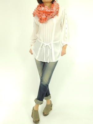 今年はボーイフレンドデニムが少し細身になって登場しています。フェミニンなトップスを合わせて着こなしたい!アクティブ度80%、フェミニン度20%。