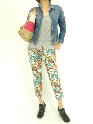 着こなしが難しそうな柄パンツは、定番アイテムを合わせて。意外と簡単にクリアできるので、トライしてみては!アクティブ度100%。