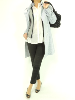 コートのインナーは重ね着風デザインのもの。シンプルコーデなのにとってもオシャレに見えます!スタイリッシュ度90%、フェミニン度10%。