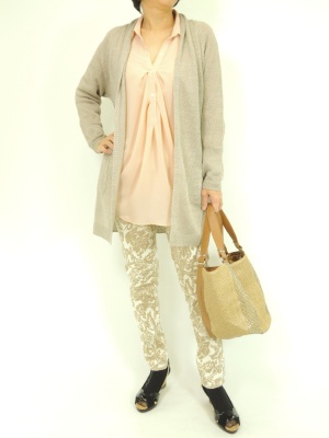 明るい色でまとめた春のカジュアルはやっぱり柄パンツがオシャレのポイント!スタイリッシュ度90%、アクティブ度10%。
