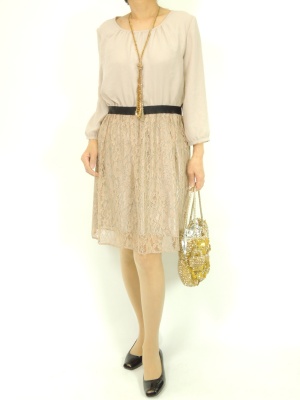 エレガントで可愛らしさもあるワンピースは一枚で様になるレース使い。特別な日に着たい一枚です!エレガンス度70%、フェミニン度30%。
