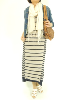 マキシワンピにはコンパクトなGジャンを羽織ると、さりげなくオシャレなデイリーカジュアルに!アクティブ度100%。