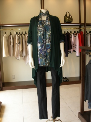 ロングカーデェの長さと細身のパンツのコーディネートが目を引きますね!スタイリッシュ度90%アクティブ度10%