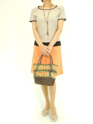 上品ワンピはナチュラルな小物を合わせると少しカジュアルダウンするので気楽なランチにもお勧め!エレガンス度60%、フェミニン度40%。