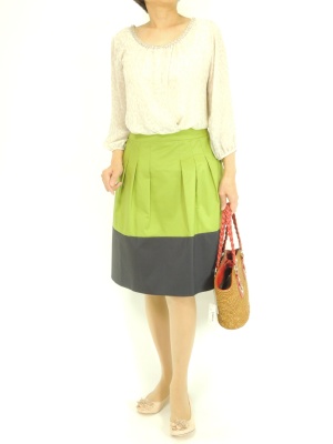 ふんわりブラウスはウエストに裾をインすればふんわりスカートにもよく合います!フェミニン度80%、エレガンス度20%。