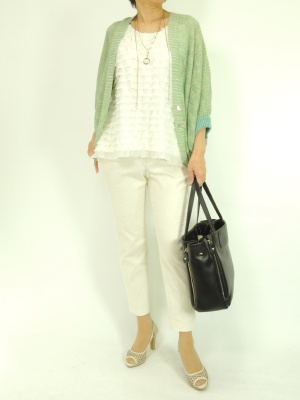 カジュアルなゆったりカーデも流行の九分丈パンツを合わせればカッコよく決まる!スタイリッシュ度80%、アクティブ度20%。