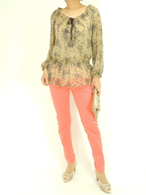 ネオンカラーのパンツは地味色トップスで大人らしくまとまる!スタイリッシュ度90%、エレガンス度10%。