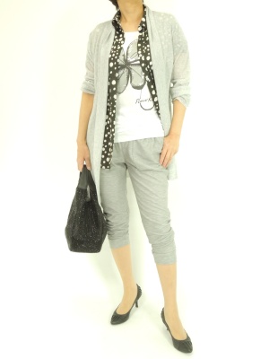 ライトグレーの辛口コーディは黒を少し効かせるとシックにまとまります!スタイリッシュ度80%、アクティブ度20%。