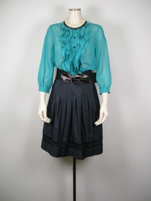 綺麗な色のブラウスは黒と合わせて大人の雰囲気に・・・。ご主人とのデートにお洒落して出かけてみてはいかがでしょう!