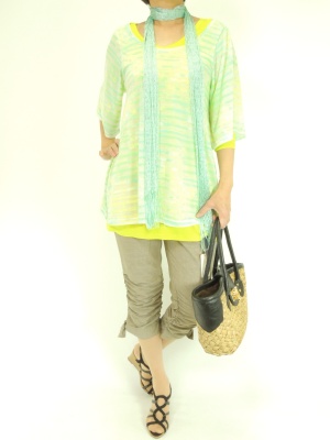 透け感のあるトップスはネオンカラーでまた違った表情を見せてくれます!アクティブ度90%、スタイリッシュ度10%。