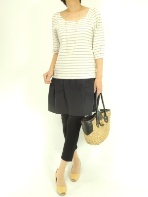 ミニ丈のトリックワンピはレギンスを合わせても可愛い。シンプルコーデでもオシャレに見えます!フェミニン度80%、アクティブ度20%。