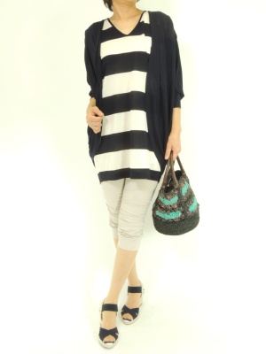 流行の太ボーダーは着流しカーデでサイドを引き締めると、スッキリ着こなせます!フェミニン度60%、スタイリッシュ度40%。