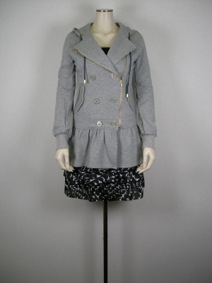 パーカとライダースをミックスしたデザインのジャケット。ティアードミニで、カッコ可愛く決めてみました。今ならロングブーツでも!スタイリッシュ度80%、アクティブ度20%。